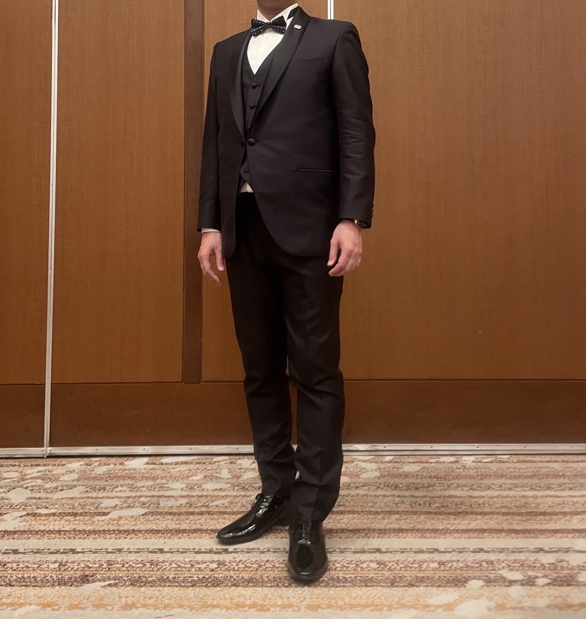 高身長の方が濃色のスーツを着ると、存在感と落ち着きの両方を演出できます。